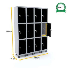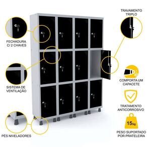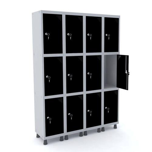 ROUPEIRO DE AÇO 4M 12 PORTAS FECHADURA PANDIN - CINZA/PRETO