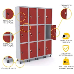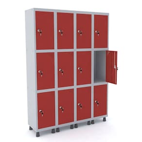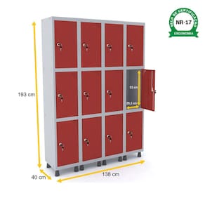 ROUPEIRO DE AÇO 4M 12 PORTAS FECHADURA PANDIN - CINZA/VERMELHO