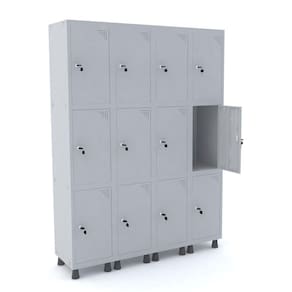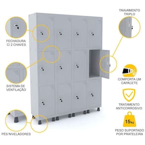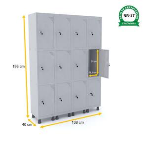 ROUPEIRO DE AÇO 4M 12 PORTAS FECHADURA PANDIN - CINZA