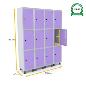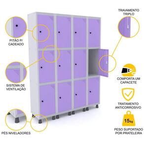 ROUPEIRO DE AÇO 4M 12 PORTAS PITÃO PANDIN - CINZA/LILÁS