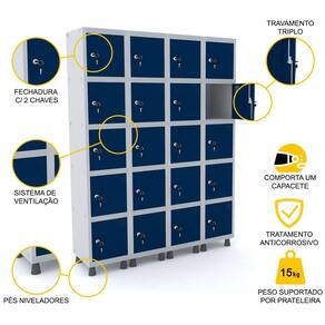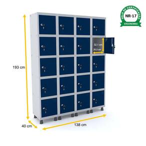 ROUPEIRO DE AÇO 4M 20 PORTAS FECHADURA PANDIN - CINZA/AZUL DEL REY