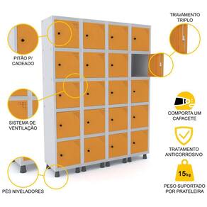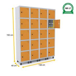 ROUPEIRO DE AÇO 4M 20 PORTAS PITÃO PANDIN - CINZA/LARANJA