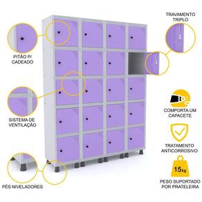ROUPEIRO DE AÇO 4M 20 PORTAS PITÃO PANDIN - CINZA/LILÁS
