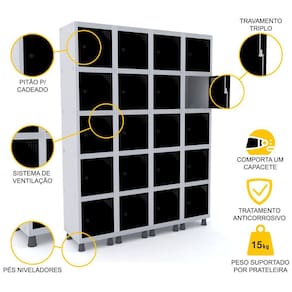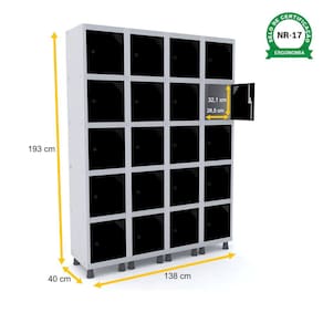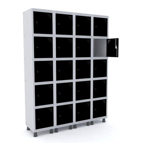 ROUPEIRO DE AÇO 4M 20 PORTAS PITÃO PANDIN - CINZA/PRETO