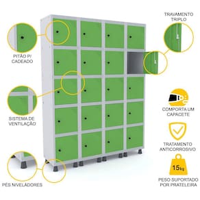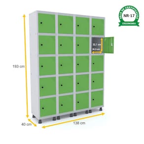 ROUPEIRO DE AÇO 4M 20 PORTAS PITÃO PANDIN - CINZA/VERDE