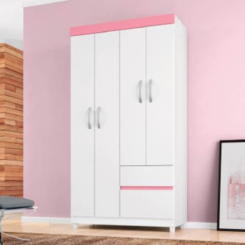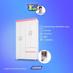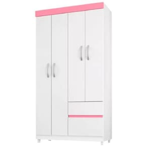 Roupeiro demobile lotus 04 pts e 02 gvt - 42060 ............ Cor: branco/rosa - voltagem: sem voltagem