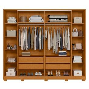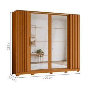 Feito em detalhes nas portas laterais com acabamento ripado, 4 gavetas com corrediça telescópicas, 4 portas, 2 cabideiros e 10 prateleiras