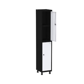 Roupeiro em Aço Mt 1v 2 Portas com Prateleira Interna Pitâo Preto/Branco