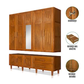 Produto dinâmico, que transita entre o clássico, um quase rústico e o contemporâneo, ao mesmo tempo sofisticado e com acabamento de extrema qualidade que o móvel merece. Pés e estrutura em madeira maciça de reflorestamento, com alta durabilidade. Peças internas como prateleiras, laterais de gavetas, fundo e contra fundo de gavetas, divisórias, bases e fechamentos do fundo, em MDF e MDP. Portas e laterais possuem o requadro em madeira, com centro de fechamento em mdf com impressão. Acabamento interno com verniz nitro, com partes em cera premium, com visual moderno e aconchegante, acabamento externo em pintura e verniz semi-brilho.