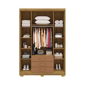 "O guarda-roupa Casal Espanha é a escolha ideal para quem busca elegância e funcionalidade em um único móvel. Com suas 4 portas e 3 gavetas, ele oferece amplo espaço para organizar roupas e acessórios de forma prática. A frente é confeccionada com espessura de 15 mm, enquanto o corpo, com 12 mm, proporciona equilíbrio entre robustez e leveza. As gavetas contam com corrediças metálicas, garantindo suavidade ao abrir e fechar, e os puxadores em plástico são discretos e modernos. O cabideiro de alumínio completa o design, oferecendo resistência para suportar as peças penduradas, tornando o Espanha um item indispensável para qualquer quarto.