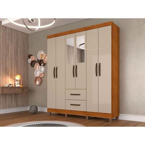 Conteudo da Embalagem: 01 Roupeiro Estrela em MDP com Espelho 6 Portas e 2 Gavetas Salleto