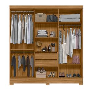 Feito em MDP, com duas gavetas com corrediças telescópicas, possui três nichos quatro prateleiras amplas e espaçosas podem ser utilizadas para guardar edredons, cobertores, caixas e sapatos