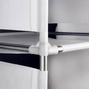 Armário prático de tecido dobrável com três divisões verticais, possui dois grandes espaços com cabideiro e 8 prateleiras. Possui cortina de rolo e abre e fecha com fechamento. Ele é projetado em tecido respirável de excelente qualidade e muito fácil de limpar. Também é fácil de montar. Uma opção útil e prática para manter suas roupas organizadas.