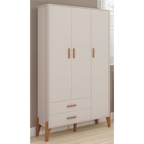 Guarda Roupa Infantil Retrô 3 Portas 2 Gavetas - 100% MDF - Possui 3 portas com dobradiças metálicas - Possui 2 gavetas com corrediças metálicas - Possui cabideiro - Puxadores de Madeira - Pintura UV Acetinado de Alta Qualidade - Possui 3 prateleiras - Possui Maleiro