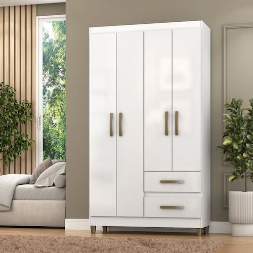 O roupeiro Lisboa é ideal para você que busca praticidade e beleza na organização dos pertences do seu dormitório, mas priorizando ter um excelente custo-benefício na compra! Possui 4 portas, sendo 2 maiores e 2 menores, além de 2 gavetas externas. É um produto com ótimo aproveitamento de espaço interno, contando com prateleira e cabideiro. As dobradiças são metálicas e os trilhos das gavetas são corrediças telescópicas. O interno na cor linho é um charme à parte! O grande diferencial é o Acabamento em Pintura UV de última tecnologia, o que garante um acabamento impecável e alta durabilidade. Parabéns, você acaba de encontrar o produto que faltava no seu lar! Produzido em MDP de excelente qualidade! Os pés e puxadores são na cor bronze. Aproveite e adquira agora mesmo! Acabamento da Prateleira: Pintura UV Escala de Brilho da Prateleira: Semi-Brilho Possui Cabideiros: Sim Acabamento da Gaveta: Pintura UV Possui Organizador de Gaveta: Não Acabamento da Porta: Pintura UV Escala de Brilho da Porta: Brilhante Altura dos Pés: 7 cm Altura Máxima dos Pés: 7.0000 Ambiente Principal: Quarto codigo_ean: 7900288057938 Complexidade da Montagem: Baixa: pode ser montado por uma pessoa sozinha Cor: Branco Cor da Porta: Branco Cor do Produto: Branco Cor Interna: Linho Escala de Brilho: Brilhante Espessura da Estrutura (mm): 12 mm Espessura das Portas (mm): 12 mm Espessura das Prateleiras (mm): 12 mm Espessura do Fundo (mm): 3 mm Espessura do Fundo das Gavetas (mm): 3 mm Gaveta com Chave: Não Guarda-Roupa Suporta Até (kg): 60 kg Informações Complementares: Acabamento Pintura UV, Caixa e Frentes 12mm, Interno cor linho, corrediças telescópicas, pés e puxadores na cor bronze Itens Inclusos: 1 Guarda Roupas + Acessórios + Manual de Montagem Linha ou Coleção: Dormitórios Manual de Montagem e Instalação: https://product-hub-prd.madeiramadeira.com.br/977119/documents/ecdbd9a3-f0a7-45cc-a7bb-9cdf954b6dd62672434406517388510358069.pdf Marca: Fellicci Material da Gaveta: MDP Material da Porta: MDP Material da Prateleira: MDP Material dos Pés: Plástico Material Principal: MDP modular: Não Necessita Montagem: Sim Origem do Produto: Nacional Peso: 42,14 kg Peso Máximo por Gaveta: 2 kg Peso Máximo por Prateleira: 10 kg Possui Calceiros: Não Possui Espelho: Não Possui Pés: 04 Possui Portas: Sim Possui Prateleiras: Sim Produto Montado: Sim Quantidade de Cabideiros: 01 Cabideiro Quantidade de Gavetas: 02 Gavetas Quantidade de Prateleiras: 01 Prateleira Recomendações de Uso, Manutenção e Limpeza: Pano levemente úmido Sistema de Montagem: parafusos Suporta Até (kg): 60 kg Tipo de Corrediça da Gaveta: Metálica Telescópica Tipo de Dobradiça/Corrediça da Porta: Metálica Tipo de Gaveta: Externa Tipo de Guarda-Roupa: Solteiro Tipo de Puxador da Gaveta: Externo Tipo de Puxador da Porta: Externo