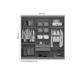 Guarda roupa 06 portas, 02 gavetas internas. Produzido em MDP 15mm e 12 mm de espessura , proporcionando resistência e durabilidade. Amplo espaço interno, garantindo maior firmeza ao móvel. Puxadores de MDF 25mm, cabideiro de madeira dando maior resistência. Gaveta ampla com melhor fixação, proporcionando maior conforto e comodidade em guardar roupas sem amassar e puxar fios. Corrediça metálica oferecendo durabilidade e um melhor deslize ao abrir e fechar as gavetas. Acabamento texturizado, garantindo a conservação