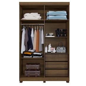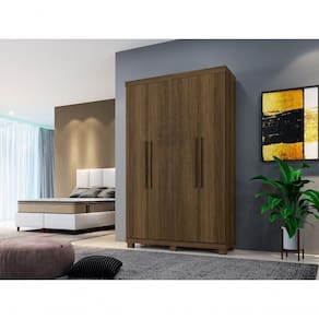 Roupeiro Milão 4 Portas 3 Gavetas Benetil Imbuia O Roupeiro Milão da Benetil é prático e funcional. Possui boa profundidade, possibilitando armazenar travesseiros, cobertores e demais objetos de forma mais organizada. Conta com três gavetas internas em corrediças telescópicas, o que garante uma maior abertura. As portas de bater dão a ele um ar tradicional, mas com elementos que valorizam cada detalhe. O cabideiro é em alumínio o que dá mais segurança e resistência. Ele é compacto. Excelentes para quartos menores. Informações técnicas: Linha: Roupeiro Milão Marca: Benetil Móveis Estilo: Moderno Origem do produto: Nacional Matéria-prima da estrutura: mdp Ambiente principal: Quarto Acabamento: uv Tipo de pintura: Fosco Necessita montagem: Sim Possui pés: Sim Quantidade de pés: 6 Altura dos pés: 5cm Material dos pés: pvc Possui portas: Sim Quantidade de portas: 4 Tipo de portas: Bater Tipo de puxador da porta: Externo Matéria-prima dos puxadores: mdf Madeirado Possui prateleiras: Sim, 5. Possui gavetas: Sim Quantidade de gavetas: 3 Tipo de gaveta: Interna Tipo de corrediça da gaveta: Telescópica Possui cabideiro: Sim Quantidade de cabideiro: 1 Matéria-prima do cabideiro: Alumínio