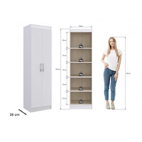 Ibiza 4099 MOVEIS DORIPEL Material MDP Diemnsões:Altura (cm) 183Largura (cm) 52Profundidade (cm) 36 Peso Real Suportado (Kg) 5kg Faixa de Peso Suportado (Kg) Até 40 Dimensões aproximadas da embalagem c/ produto (AxLxP) 183X35X11 02 portas de bater Número de Compartimentos (Nichos) 5 Número de Prateleiras 4 Capacidade (Pares de Sapato) Aproximadamente 12 pares Peso da embalagem c/ produto (kg) 28kg SAC do Fabricante: assistencia@doripel.com.br Atenção! Confira as dimensões deste produto e certifique-se de que passará normalmente por supostos elevadores, portas, escadas e/ou corredores de sua moradia; As imagens são ilustrativas, eletrodomésticos e demais objetos que compõem o cenário, não fazem parte do anúncio; Sobre a tonalidade das cores, poderá ocorrer alterações conforme a configuração do seu monitor. Orientamos que a montagem e instalações do produto seja realizado por um técnico de sua confiança, após a sua entrega. Não nos responsabilizamos pela instalação/montagem. Fornecemos somente assistências, por defeitos de fábrica. Fornecemos opções de Retirada na nossa loja Saimys moveis na avenida Ragueb Chohfi para não haver custo de envio.