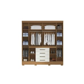 Guarda Roupa 8 Portas 4 Gavetas Nápole Aramóveis. Produzido inteiro em aglomerado 12mm na caixa e 15mm nas portas, proporcionando resistência e durabilidade. Amplo espaço interno, garantindo maior firmeza ao móvel. Puxadores de Plástico dando maior resistência. Gavetas amplas com melhor fixação, proporcionando maior conforto e comodidade em guardar roupas sem amassar e puxar fios. Cabideiro em Aluminio, garantindo a sustentação das roupas sem quebrar com facilidade e sem envergar com o tempo de uso. Dobradiças metálicas dando maior durabilidade e resistência ao abrir e fechar as portas, corrediças das gavetas em metal, oferecendo durabilidade e um melhor deslize ao abrir e fechar as gavetas. Acabamento em verniz texturizado fosco, garantindo a conservação do móvel, além de manter o brilho constante oferece ao móvel beleza, resistência e durabilidade prolongando a vida útil do produto.