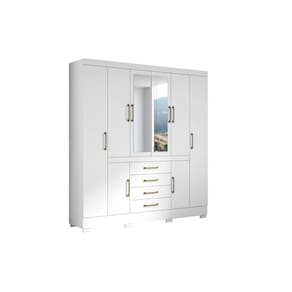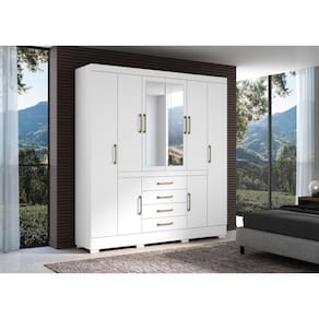Guarda Roupa 8 Portas 4 Gavetas Nápole Aramóveis. Produzido inteiro em aglomerado 12mm na caixa e 15mm nas portas, proporcionando resistência e durabilidade. Amplo espaço interno, garantindo maior firmeza ao móvel. Puxadores de Plástico dando maior resistência. Gavetas amplas com melhor fixação, proporcionando maior conforto e comodidade em guardar roupas sem amassar e puxar fios. Cabideiro em Aluminio, garantindo a sustentação das roupas sem quebrar com facilidade e sem envergar com o tempo de uso. Dobradiças metálicas dando maior durabilidade e resistência ao abrir e fechar as portas, corrediças das gavetas em metal, oferecendo durabilidade e um melhor deslize ao abrir e fechar as gavetas. Acabamento em verniz texturizado fosco, garantindo a conservação do móvel, além de manter o brilho constante oferece ao móvel beleza, resistência e durabilidade prolongando a vida útil do produto.