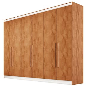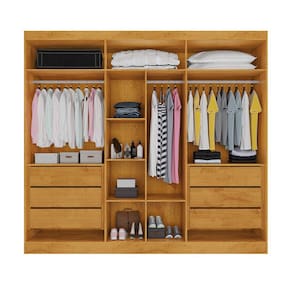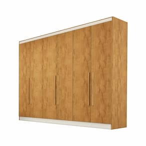 Roupeiro elegante com 6 portas de bater, com dobradiças modernas e reforçadas. Gavetas internas com corrediças telescópicas. Possui puxadores em madeira, excelente espaço interno, Cabideiro em alumínio.