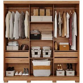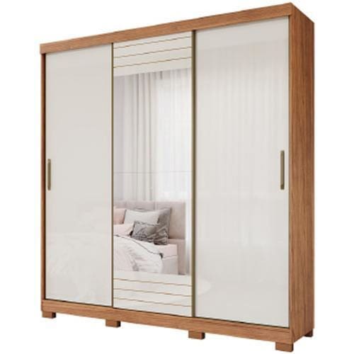Principais características: Produto em 100% mdf. 03 portas de correr, sendo a porta central com espelho e detalhe em alto relevo. Perfis das portas em alumínio. Interno com divisão funcional. 04 gavetas com corrediças telescópicas, que garantem maior resistência e durabilidade. Kit pés em abs incluso no produto.