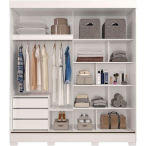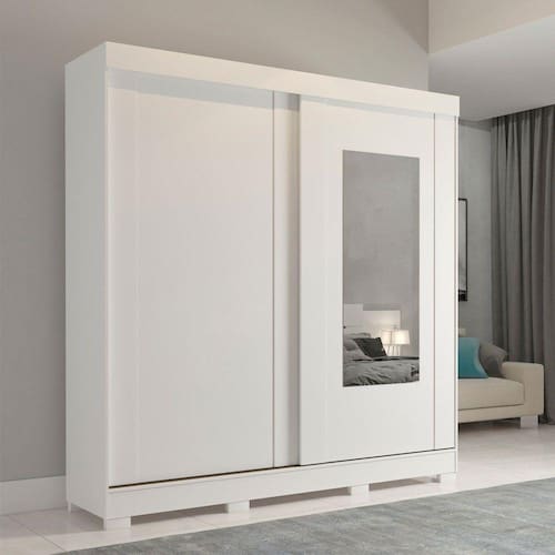 Características: Roupeiro 100 MDF 02 portas de correr, espelho, interno com excelente diviso. 03 gavetas com corredias telescópicas, que garantem maior resistência e durabilidade. 02 portas, sendo uma delas com espelho, com ps em ABS, diviso com nichos que permitem melhor acomodar dos itens.