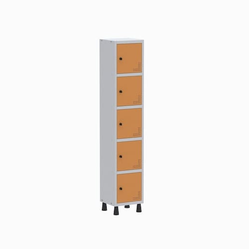 Armário Roupeiro de Aço totalmente montável, dispensa a utilização de parafusos, estrutura em chapas #24 e #26 (0,60mm e 0,45mm) conta com uma porta com estampos circulares em formação triangular para ventilação, sistema de fechamento de varão de 3 pontos, através de pitão para cadeado. Em conformidade com as normas NR17. Acabamento da Porta: Pintura Ambiente Principal: Escritório Complexidade da Montagem: Média: pode ser montado por mais de uma pessoa e/ou necessite de maior conhecimento para montagem Cor: Cinza/Laranja Cor do Produto: Cinza/Laranja Cor Interna: Cinza/Laranja Picasso Escala de Brilho: Semi-Fosco Escala de Brilho da Porta: Semi-Brilho Itens Inclusos: 1 Armário e Manual de Montagem. Linha ou Coleção: AÇO Manual de Montagem e Instalação: https://product-hub-prd.madeiramadeira.com.br/932196/documents/ada595f8-e1ca-46de-afe2-842bf4873b900130Roupeiro20Linha20Light.pdf Material da Porta: Aço Material do Puxador da Porta: Poliestireno Material dos Pés: Polipropileno Material Principal: Aço Necessita Montagem: Sim Origem do Produto: Nacional Pés Reguláveis: Sim Peso: 11,2531 kg Possui Espelho: Não Possui Pés: 04 Possui Portas: 05 Possui Prateleiras: Não Recomendações de Uso, Manutenção e Limpeza: Utilizar um pano levemente umedecido com água, para finalizar utilizar um pano seco. Sapatas Niveladoras: Sim Sistema de Montagem: Parafuso Suporta Até (kg): 20 kg Tipo de Dobradiça/Corrediça da Porta: Aço Tipo de Puxador da Porta: Externo
