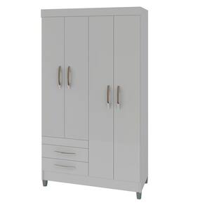 O Roupeiro Solteiro 4 portas 2 gavetas Recife da Poliman Moveis e pratico e amplo, sendo todo branco com 2 pares de vistas FLEX que podem ser montadas como preferir combinando com os mais variados ambientes. Possui divisorias internas bem planejadas, cabideiro em aluminio, 04 portas de bater, 02 espacosas gavetas com corredicas metalicas e puxadores em polimero, alem de acompanhar pes fixos de uso opcional. Produto em pintura UV brilho, em MDP, ecologicamente correto que garantem a beleza e qualidade do produto, pois utiliza madeira de reflorestamentos, controle de poluentes e descarte rigoroso de residuos durante o processo produtivo. As embalagens sao feitas para que o produto chegue a perfeito estado em sua residencia, utilizando isomanta para protecao das pecas que sao embaladas em caixa de papelao revestida por plastico termoencolhivel. Produto com toda qualidade que so a Poliman oferece.
