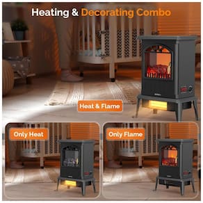 PROTEÇÃO DE SEGURANÇA O aquecedor da lareira é projetado com proteção contra superaquecimento e tombamento. Ele desliga automaticamente quando fica muito quente ou quando tomba. EFEITO DE CHAMA REALISTA O recuperador de calor tem efeito de chama realista. Não só vai aquecer o seu quarto, mas também encantar os seus olhos. TEMPERATURA AJUSTÁVEL A temperatura do aquecedor do fogão pode ser ajustada para atender às suas necessidades específicas, girando o botão da lareira. E é projetado com 2 configurações de calor, 1000W ou 1500W. FÁCIL DE USAR O aquecedor de ambiente possui botões para ligar, desligar o efeito de chama e o modo de aquecimento selecionado. E você pode ajustar a temperatura simplesmente ajustando o botão do aquecedor