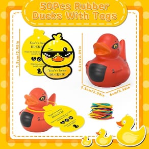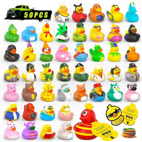 Mergulhe na diversão com nossos 50 patos de borracha a granel! Esta vibrante variedade de patos de borracha é perfeita para todas as suas necessidades, quer você esteja procurando apimentar suas aventuras de pato de jipe ou procurando os brinquedos de banho ideais para crianças. Nossa coleção apresenta uma variedade de mini patos que certamente trarão alegria para crianças e adultos! Estes encantadores patinhos de borracha são presentes fantásticos para os amantes de patos e são perfeitos para uma variedade de ocasiões. Use-os como lembrancinhas de festa encantadoras em festas de aniversário, chás de bebê ou atividades de verão na piscina na praia. Eles também funcionam muito bem como recompensas de sala de aula, prêmios de carnaval ou até mesmo como decorações peculiares para eventos especiais. Feitos de materiais de alta qualidade, estes patos de borracha flutuam sem esforço e são seguros para crianças durante a hora do banho. Cada pato é projetado para suportar respingos, tornando a hora do banho uma experiência divertida para os pequenos. Se você está planejando passeios emocionantes de pato de jipe, organizando festas de verão ou simplesmente quer adicionar um pouco de charme à sua oferta, nosso pato de borracha a granel tem o que você precisa. Adicione este adorável pato de borracha ao seu carrinho hoje e faça de cada ocasião um bom momento para grassar! - Traga alegria e diversão com patos de borracha: nosso pacote de 50 patos de borracha a granel apresenta designs encantadores, desde patos amarelos clássicos até patos criativos semelhantes a animais, super-heróis ou personagens de desenhos animados populares, perfeitos para festas e reuniões. São decorações encantadoras que trazem alegria a qualquer evento infantil, tornando-as ideais para festas e celebrações festivas. - Patos divertidos e significativos para todos: nossos patos de borracha com etiquetas que escrevem "Você foi abaixado, espero que os patos lhe tragam um bom humor para o dia", essas charmosas etiquetas de patos tornarão a reunião mais divertida e significativa para todos. Você também pode escrever seus melhores desejos e escondê-los como uma surpresa para seus amigos ou familiares, todos podem compartilhar a diversão e alegria com nossos patos de cruzeiro. - Jeep Ducks for Ducking: 50 peças de patos de borracha a granel são ótimos para o popular jogo de "pato" visto em estacionamentos, nossos designs exclusivos de patos de borracha que permitem que você combine o pato perfeito com o carro que você deseja surpreender. - Material seguro para crianças: Feito de borracha de alta qualidade, nossos patos de borracha são uma adição essencial à rotina de banho ou chuveiro do seu filho. Sua construção durável garante que eles resistam a brincadeiras difíceis e durem inúmeras aventuras, dando aos pais paz de espírito enquanto seus filhos desfrutam de experiências alegres de brincadeira. - Lembranças e decorações de festa perfeitas: Estes patos de borracha são lembrancinhas fantásticas de festa para aniversários, feriados e eventos como Dia dos Namorados ou Páscoa. Use-os como recompensas de jogo ou decoração encantadora para salas de aula e celebrações para o próximo Dia dos Namorados!