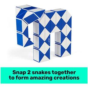 A Cobra de Rubik é um brinquedo com 24 cunhas de formato idêntico a prismas. As cunhas são conectadas, por meio de parafusos de mola, de modo que possam ser torcidas, mas não separadas. Através dessa torção, a Cobra de Rubik pode alcançar posições que incluem uma linha reta, uma bola, um cachorro, um pato, um retângulo, uma cobra e muitas outras formas e figuras imaginativas. Com este pacote de dois Connector Snakes, você pode juntar duas ou mais cobras para criar criações imaginativas como um coelho, uma cobra, um dinossauro ou uma lagosta! Quanto mais serpentes conectoras, mais possibilidades infinitas neste quebra-cabeça 3D. Inventado em 1974 por Erno Rubik, o brinquedo de quebra-cabeça de combinação de cores - o Cubo de Rubik - foi criado para ajudar os alunos a entender problemas tridimensionais. O protótipo do Cubo Mágico fez coisas que o mundo não tinha visto antes. Ele virou, torceu e ainda assim não quebrou. Adicionar 54 adesivos coloridos aos seis lados deu ao quebra-cabeça sua aparência icônica. Mais de 40 anos de história levaram o Cubo de Rubik a se tornar um dos brinquedos mais vendidos de todos os tempos. Com o novo Rubik's Connector Snake - conecte suas Cobras e crie novas formas para se tornar o mestre de quebra-cabeças de sua casa. Mostre-nos o que você pode construir com este brinquedo! Este quebra-cabeça inteligente é a ideia de presente perfeita para pessoas de todas as idades ou um enchedor de meias para quem adora desafios. Compartilhe sua criatividade em nossos canais sociais usando #RubiksSnake.