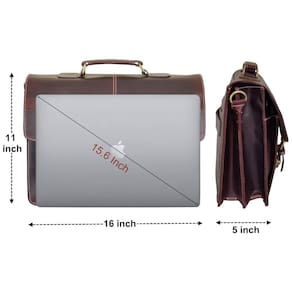 Importado DIMENSÕES 16 x 11 x 5 polegadas, 40 x 27 x . A bolsa tem um amplo espaço para guardar seus Macbooks, Chromebooks e Laptops favoritos com até 15,6 polegadas, de tamanho. COURO DE BÚFALO ROBUSTO REAL 100 , não PU ou falso, mas natural, bonito e feito à mão esfregada com óleo e desgastada, esta bolsa melhora com o tempo e cheira muito bem TERNOS PARA EMPRESAS OU CASUAIS tem aquele visual de pasta de couro difícil de conseguir, embora seja urbano e moderno com fivelas e acessórios de latão, forro e costura resistentes e zíperes YKK AJUSTES PARA O CONFORTO para aquelas viagens longas, a alça de ombro nesta bolsa de couro para laptop é totalmente ajustável há também um fechamento com zíper acima do compartimento 2 1 para manter as coisas seguras enquanto em movimento ACESSO RÁPIDO ÀS SUAS COISAS organize se facilmente com 2 1 compartimentos, bolso para telefone, porta cartões, 1 bolso de segurança interno com zíper, 1 bolso externo com zíper e 2 bolsos externos de acesso rápido ideal para pequenos laptops e tablets Marca: Não Informado