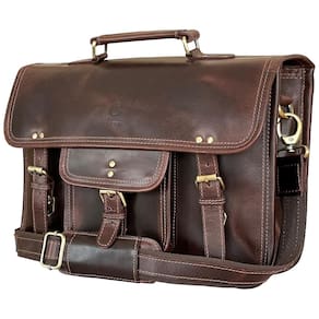 COURO DE BÚFALO ROBUSTO REAL ... Couro de grão superior, não PU ou falso, mas natural, bonito e feito à mão esfregada com óleo e desgastada, esta bolsa melhora com o tempo e cheira muito bem TERNOS PARA NEGÓCIOS OU CASUAIS ... tem aquele visual de pasta de couro difícil de conseguir, embora seja urbano e moderno com fivelas e acessórios de latão, forro e costura resistentes e zíperes YKK AJUSTE PARA O CONFORTO para aquelas viagens longas, a alça de ombro nesta bolsa de couro para laptop é totalmente ajustável há também uma pulseira de segurança para manter as coisas seguras em qualquer lugar ACESSO RÁPIDO ÀS SUAS COISAS organize se facilmente com 1 1 compartimentos, 1 bolso interno de segurança com zíper, 1 bolso externo com zíper e 1 bolso externo de acesso rápido ideal para pequenos laptops e tablets Marca: Não Informado