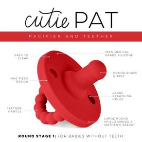 Cutie PAT | Chupeta e mordedor | Estágio 1: Para bebês sem dentes | Feito com | de silicone 100% de grau médico Cores Neutras: Combina roupas de bebês | Projetado nos EUA | Fabricado na China | Chupeta REDONDA mamilo macio | | de design de uma peça GRANDE escudo redondo | GRANDES orifícios de respiração | Teether DESIGN sente-se bem nas gengivas do bebê | NIPPLE aparece enquanto está sendo como um mordedor | HANDLE torna mais fácil para o bebê segurar e colocar na boca Nosso Cutie Pat vem em dois estágios Estágio 1: recomendado para bebês sem dentes Estágio 2: recomendado para bebês com dentes DIREÇÕES Antes do primeiro uso, remova o produto da embalagem. Lave com água e sabão. Deixe secar ao ar. Cofre para lava-louças, apenas rack superior. Inspecione antes de cada uso, especialmente quando o bebê tiver dentes. Descarte ao sinal imediato de dano. O mamilo deve ser chupado, como um meio de acalmar, não mastigado. Ao usar como um teether, pop mamilo antes de usar. Por segurança, recomenda-se substituir após 4 semanas de uso. Não use sem supervisão de um adulto. Não amarre ao redor do pescoço de uma criança. Alimentos coloridos, corantes e / ou outros líquidos podem causar descoloração e coloração. AVISO DE PATENTE PENDENTE: Para evitar um risco de asfixia, inspecione antes de cada uso, especialmente quando o leite tiver dentes. Descarte imediatamente ao sinal de dano. O mamilo deve ser sugado como um meio de acalmar, não mastigado. Ao usar como um teether, pop mamilo antes de usar. Por segurança, recomenda-se substituir após 4 semanas de uso. Não use sem supervisão de um adulto. Não amarre ao redor do pescoço de uma criança.