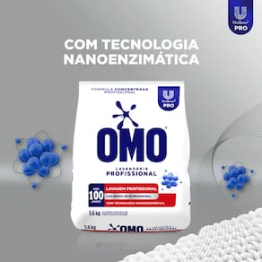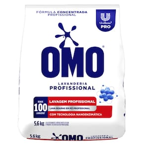 Marca: OMO Tipo: Sabão em pó para roupas Linha: Lavagem Profissional Apresentação: Sachê Peso: 5,6 kg Indicação de uso: Lavagem de roupas Aplicação: Uso doméstico ou profissional