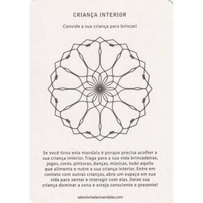 Cartas: Sabedoria das Mandalas Criança Interior - Cartas de Reflexão para Colorir. As 38 cartas com desenhos de mandalas e textos para reflexões convidam você a refletir as necessidades de sua criança interior e resgatar o que ela precisa sobre um determinado tema ou situação, no momento presente de sua vida.