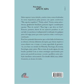 O livro trata das dificuldades em exercer o autocontrole e ser perseverante nas decisões que envolvem objetivos e metas de longo prazo, buscando o equilíbrio e a moderação entre a impulsividade e a procrastinação - dois lados de um fenômeno que se relaciona com a forma como lidamos com o tempo e a nossa capacidade de gerenciá-lo. No primeiro capítulo, o autor fala sobre o lado bom de saber esperar, explicando porque é importante para nosso bem-estar e nossa sobrevivência, discutindo conceitos como tolerância, persistência, gratificação. O segundo capítulo se ocupa da frequente incapacidade de perseverar nas decisões relacionadas a dietas, propósitos ou planos de longo prazo, em função de alguns conceitos de economia comportamental, como o desconto temporal (desvalorização de uma recompensa futura), inconsistência dinâmica das preferências (contrastes entre desejos atuais e futuros) e conflitos intrapessoais (a influência do "eu presente" sobre o "eu futuro"), além de fatores biológicos e culturais. O terceiro capítulo é dedicado aos custos da espera e como eles determinam a nossa capacidade de tolerância, seja em termos emocionais, seja em termos de oportunidades desperdiçadas, abordando a questão da dinâmica entre o desejo de gratificação imediata e o arrependimento. O quarto capítulo se concentra sobre o lado ruim da espera, ou seja, a procrastinação, que se distingue tanto do hedonismo (seguir sempre o impulso dominante) quanto da acídia (não fazer nada) por ser uma vontade honesta de fazer algo, renunciando até mesmo às gratificações, mas que não se concretiza e gera insatisfação. O quinto e último capítulo apresenta conselhos e estratégias para lidar com os maus hábitos e a impaciência, treinar a tolerância e o autocontrole.