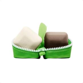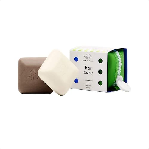 Estojo de viagem com sabonete em barra Drunk Elephant Baby Juju and Baby Pekee. Sabonete facial esfoliante e hidratante em barra. 1 onça cada. Estojo Travel Duo +.