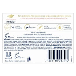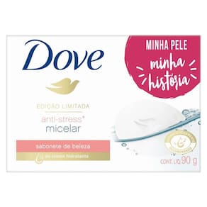 Dove Anti-Stress Micelar combina o poder de limpeza micelar com 1/4 de creme hidratante Durante a limpeza, pequenas partículas, chamadas de micelas, se formam em volta das sujeiras e impurezas causadas pelos fatores estressantes ambientais diários, gentilmente eliminando-as e deixando sua pele mais macia e suave. Dove não resseca a pele como sabonetes comuns. Deixa a pele macia, bem cuidada e com aspecto saudável Pode ser usado diariamente no rosto, mãos e corpo Não é um sabonete comum, é um sabonete que ajuda na hidratação da pele