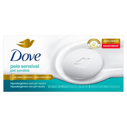 A barra de beleza Dove Pele Sensível tem pH neutro e fórmula hipoalergênica, além de 1/4 de creme hidratante para oferecer o melhor cuidado para a sua pele.