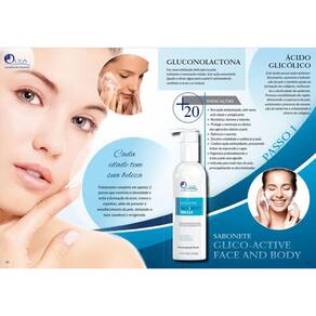 Descrição Sabonete glico-ativo face and body esfolia revitaliza ilumina melhora a vitalidade da pele Renovação celular , hidratação intensa e ação rejuvenescedora. Limpeza profunda da pele; Hidrata e ilumina; Renovação celular; ; Antiacne. Volume: 240ml descrição indicação Higieniza e auxilia nos processos associados ao espessamento da pele, através de sua ação esfoliativa. A remoção das células mortas favorece a renovação celular contribuindo com a revitalização cutânea. Seu uso frequente condiciona a pele, tornando-a luminosa e com vitalidade. Higienização de peles desvitalizadas e espessas. Ativos Ácido glicólico Gluconolactona Ácido lactobiônico Pró-vitamina b5 modo de usar: aplicar sobre a pele e espalhar uniformemente. Deixar agir por um minuto. Enxaguar abundantemente. Usar diariamente ou conforme orientação. Recomenda-se uso diário de protetor solar. Precauções: como todos os produtos similares, é desaconselhável para as pessoas sensíveis aos componentes da fórmula. Para peles morenas escuras a negras é recomendável observação da tonalidade da pele. Não aplicar nas pálpebras e ao redor dos olhos. Enxaguar imediatamente a pele após a aplicação. Durante a primeira semana de uso, aplicar pequenas quantidades do produto, em dias alternados. Uma leve sensação de ardor ou ressecamento da pele poderá ser observado nas primeiras aplicações. Não insistir no uso contínuo, caso ocorra algum efeito indesejável. Não ingerir. Em caso de contato acidental com os olhos, enxaguar abundantemente. Havendo irritação, suspenda o uso e procure por orientação médica. Manter fora do alcance de crianças . Evitar exposição do produto a luz solar. Manter embalagem fechada. Dermatologicamente testado