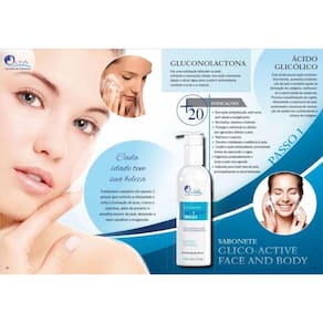 Descrição Sabonete glico-ativo face and body esfolia revitaliza ilumina melhora a vitalidade da pele Renovação celular , hidratação intensa e ação rejuvenescedora. Limpeza profunda da pele; Hidrata e ilumina; Renovação celular; ; Antiacne. Volume: 240ml descrição indicação Higieniza e auxilia nos processos associados ao espessamento da pele, através de sua ação esfoliativa. A remoção das células mortas favorece a renovação celular contribuindo com a revitalização cutânea. Seu uso frequente condiciona a pele, tornando-a luminosa e com vitalidade. Higienização de peles desvitalizadas e espessas. Ativos Ácido glicólico Gluconolactona Ácido lactobiônico Pró-vitamina b5 modo de usar: aplicar sobre a pele e espalhar uniformemente. Deixar agir por um minuto. Enxaguar abundantemente. Usar diariamente ou conforme orientação. Recomenda-se uso diário de protetor solar. Precauções: como todos os produtos similares, é desaconselhável para as pessoas sensíveis aos componentes da fórmula. Para peles morenas escuras a negras é recomendável observação da tonalidade da pele. Não aplicar nas pálpebras e ao redor dos olhos. Enxaguar imediatamente a pele após a aplicação. Durante a primeira semana de uso, aplicar pequenas quantidades do produto, em dias alternados. Uma leve sensação de ardor ou ressecamento da pele poderá ser observado nas primeiras aplicações. Não insistir no uso contínuo, caso ocorra algum efeito indesejável. Não ingerir. Em caso de contato acidental com os olhos, enxaguar abundantemente. Havendo irritação, suspenda o uso e procure por orientação médica. Manter fora do alcance de crianças . Evitar exposição do produto a luz solar. Manter embalagem fechada. Dermatologicamente testado