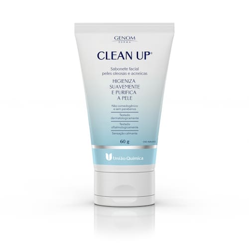 Clean up é um sabonete facial para peles oleosas e acneica que higieniza a pele (oleosa e acneica) sem ressecá-la. Clean up® purifica e equilibra a pele através de agentes umectantes, com sistema tensoativo de limpeza profunda, removendo as impurezas.