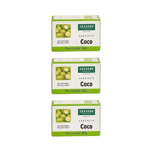 DESCRIÇÃO O sabonete Granado de 100g com coco é um produto de alta qualidade, formulado com ingredientes naturais e cuidadosamente selecionados para proporcionar uma limpeza suave e hidratante para a pele. Com um delicioso aroma de coco, este sabonete é perfeito para quem deseja uma sensação refrescante e revigorante durante o banho. Sua fórmula contém óleo de coco, que possui propriedades hidratantes e antioxidantes, ajudando a manter a pele macia, saudável e protegida contra os efeitos nocivos dos radicais livres. Além disso, o sabonete Granado de coco é enriquecido com glicerina vegetal, que ajuda a manter a hidratação natural da pele, evitando a sua desidratação. Este sabonete é indicado para todos os tipos de pele, especialmente para peles sensíveis, pois sua fórmula é livre de parabenos, corantes e ingredientes de origem animal. Com o sabonete Granado de 90g com coco, você pode desfrutar de uma limpeza suave e refrescante, deixando sua pele macia, hidratada e perfumada.