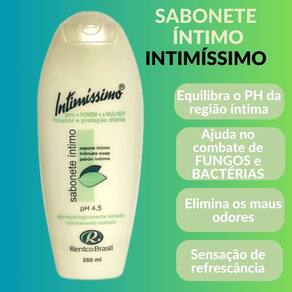 O que o Intimíssimo faz: * Elimina maus odores e coceiras *Ajuda a combater naturalmente os fungos e bactérias nocivas. *Sensação de refrescância. *Equlibra o PH *Contém essência natural de óleos essenciais. Sem perfume sintético. *Não irritante, suave e delicado. *Clínica e dermatologicamente testado. *Higiene perfeita e natural * Uso externo.
