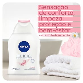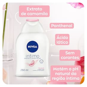 O que é? Sabonete líquido íntimo NIVEA Suave que limpa e protege a região íntima da mulher. Além de prevenir irritações, acalma a pele, pois contém extrato de camomila.
