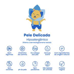 • pH da pele• Da cabeça aos pés• Sem lágrimas• Cheirinho de carinho• Hipoalergênico• Oftalmo e dermatologicamente testado• Com ingredientes de origem natural• Sem parabenos• Sem corantes• Não testado em animais• Produto vegano