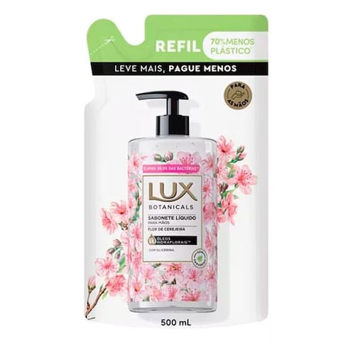 O Sabonete Líquido Lux Refil Para Mãos Flor De Cerejeira 500ml proporciona uma higienização suave e eficaz. Sua fórmula com Óleos Hidraflorais e extrato de flores promovem uma limpeza delicada sem agredir a pele, proporcionando uma agradável sensação de frescor e maciez. Desenvolvido com uma fragrância delicada que encanta, que além de hidratar a pele e deixa-lá macia, proporciona um delicioso perfume suave, que dura por muito tempo na pele. Além disso, possui embalagem econômica com 70% menos plástico.