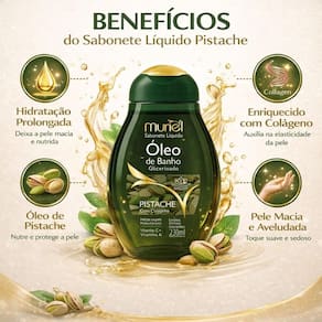 Sua fórmula exclusiva combina o poder do óleo de pistache, conhecido por suas propriedades nutritivas e antioxidantes, com o colágeno, um ingrediente essencial para manter a firmeza e elasticidade da pele. Desfrute de uma experiência sensorial única, com uma fragrância sofisticada e duradoura de pistache que transforma seu banho em um momento de puro prazer. Perfeito para todos os tipos de pele, especialmente as mais secas e sensíveis.